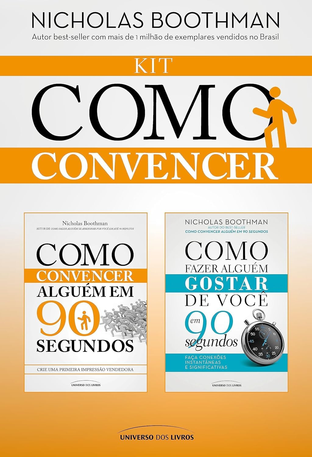 O kit inclui dois livros fundamentais: “Como convencer alguém em 90 segundos” e “Como fazer alguém gostar de você em 90 segundos”. Nicholas Boothman, especialista em Programação Neurolinguística (PNL), apresenta técnicas comprovadas para transformar primeiras impressões em relações duradouras e produtivas, seja no âmbito profissional ou pessoal.