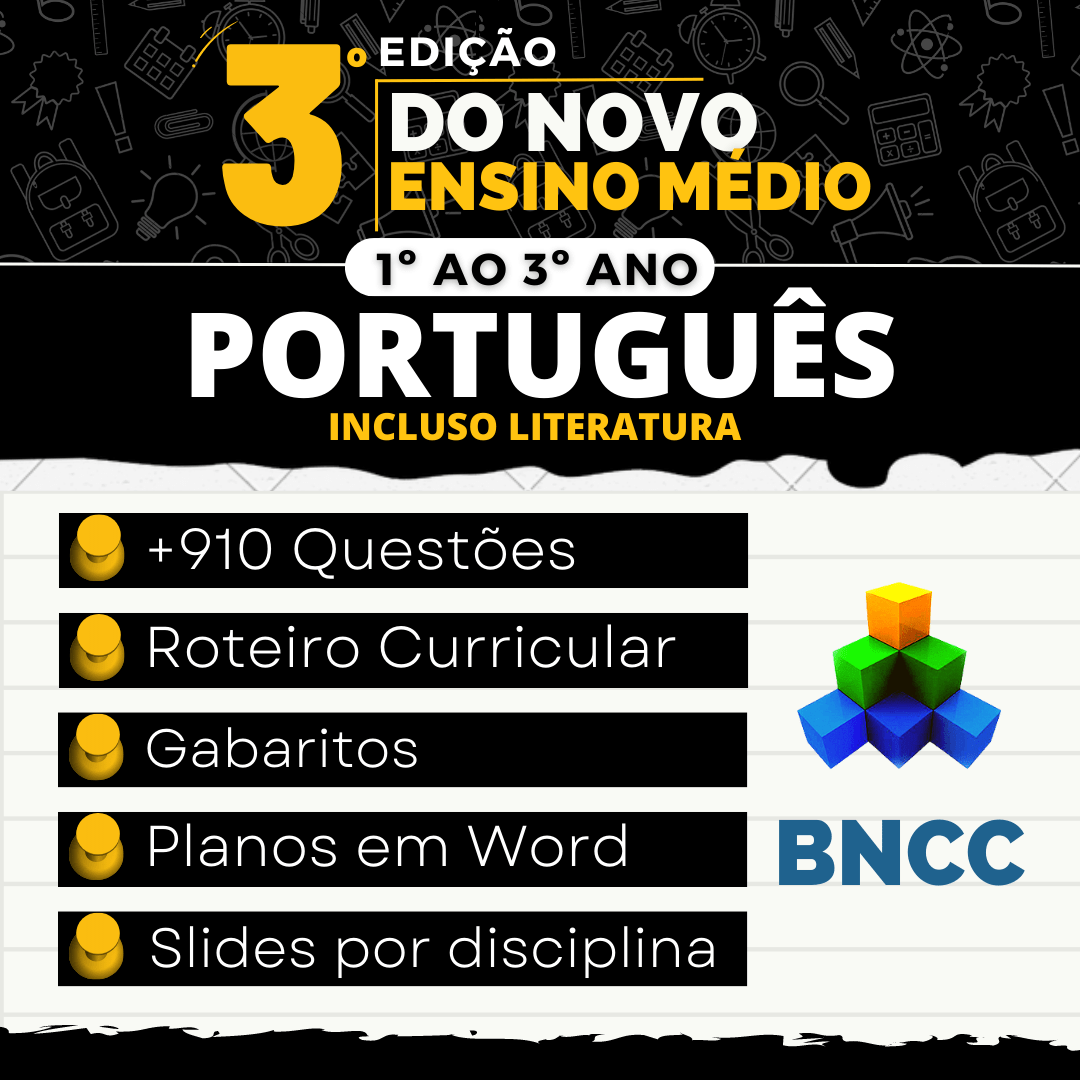 Este Material foi elaborado pensando em cada detalhe do dia a dia de sua sala de aula. Para torná-las menos cansativas, elaboramos tudo para você e condensamos neste produto com 📌📄Planos de Aulas das Eletivas do Novo Ensino Médio 📌📙Plano de Aulas para o Ensino Regular 1°, 2° e 3° Ano 📌📝Roteiro Curricular segmentado por Ano/Série e Bimestre 📌📚🔖Bônus incríveis 📌📚🔖 Questões por TEMA 📌📚🔖 Atividades 📌✅ Gabaritos 📌💻Slides por Disciplinas 📌💡Mapas Mentais 📌📒📗📘 Resumos Lembrando que os bônus são liberados 7 dias após a compra e que este Material receberá 4 atualizações durante o Ano, sendo uma por Bimestre.