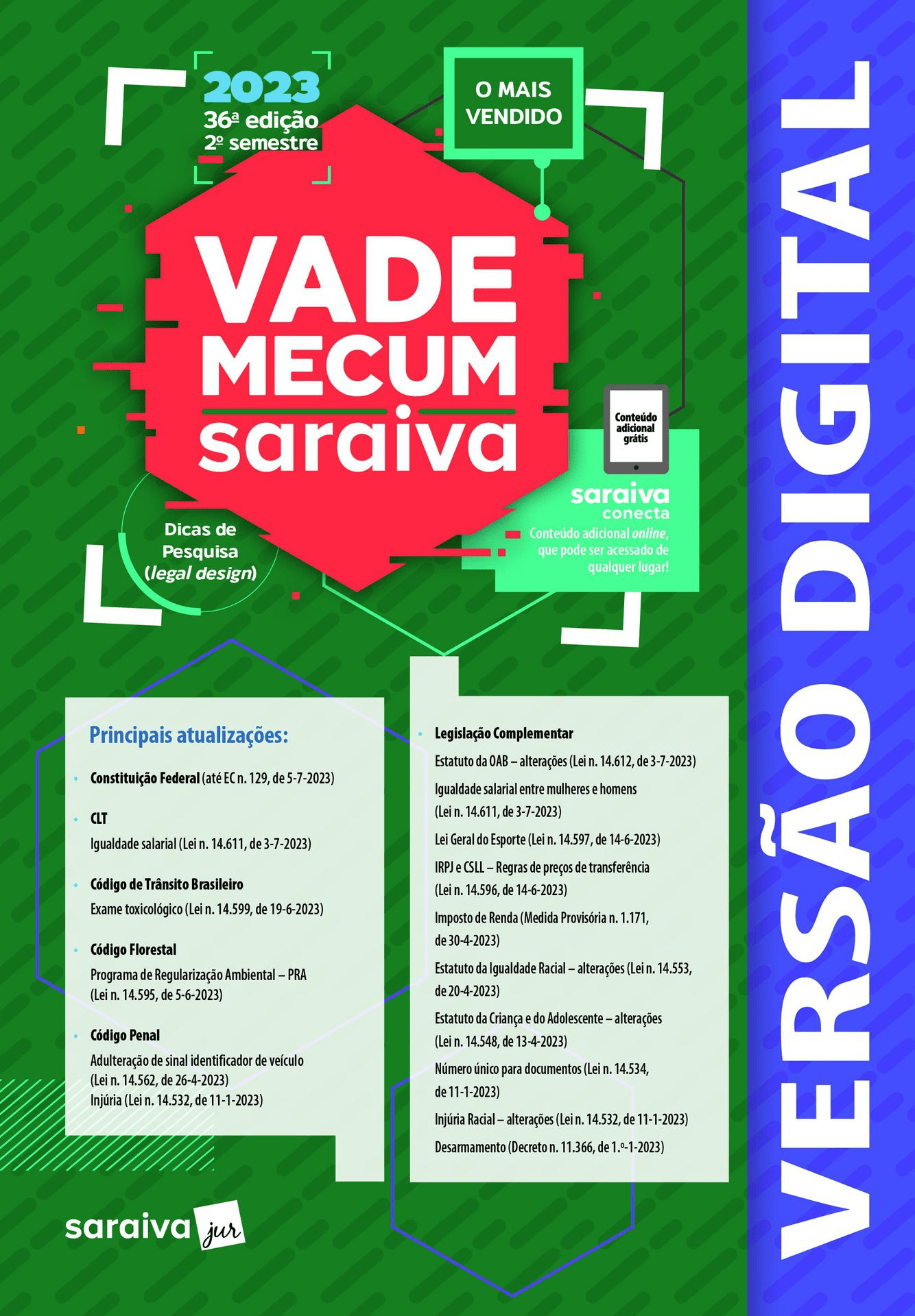 O Vade Mecum Saraiva, o livro jurídico mais vendido do Brasil, chega à sua 36ª edição, totalmente revisto e atualizado. Abaixo, destacamos os principais benefícios e novidades que tornam este Vade Mecum a escolha preferida entre tantas opções disponíveis no mercado: